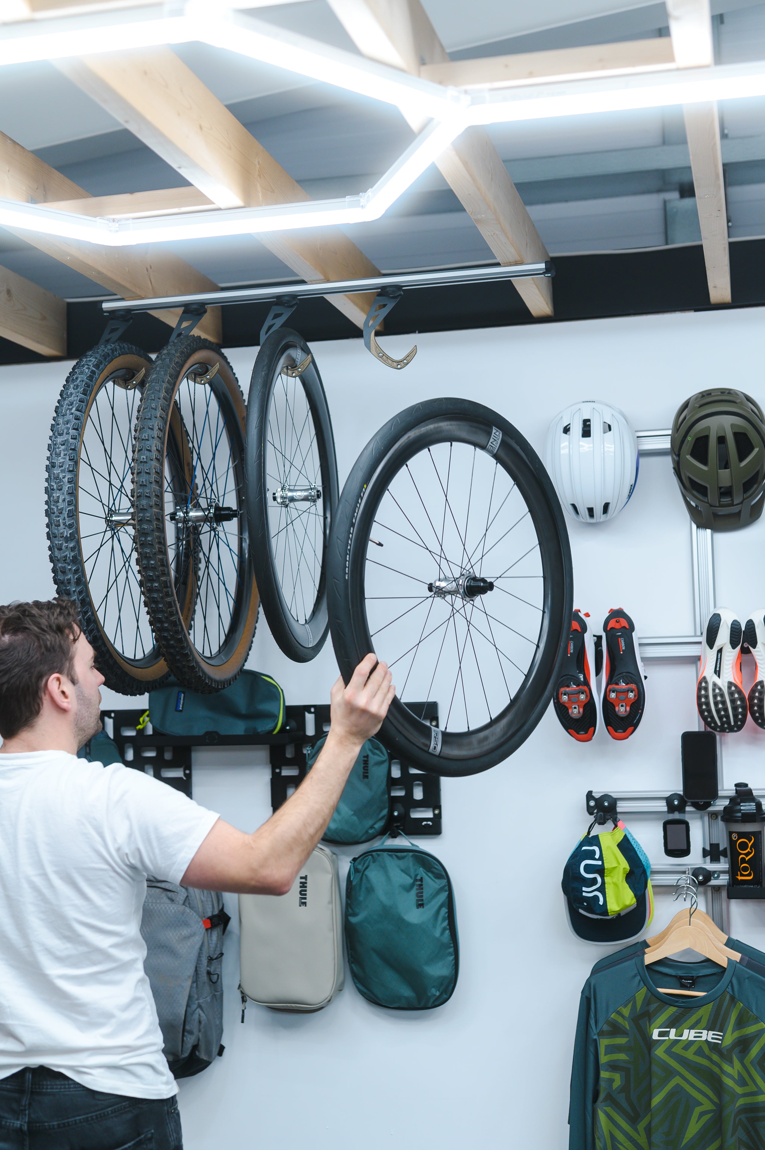 Built around a precision engineered modular rail system, Lodestar lets you organise helmets, shoes, wheels, clothing, tools, and accessories exactly how you want. Everything is visible, easy to reach, and simple to adjust as your setup evolves.