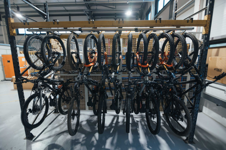 SpaceRail peut être fixé aux murs, aux plafonds ou aux faux-plafonds. Transformez facilement des espaces commerciaux inutilisés en parkings à vélos pour vos employés, pour accueillir davantage de vélos dans votre atelier ou pour agrandir votre parc de location. Nos systèmes de rangement pour vélos peuvent être combinés avec des installations industrielles.