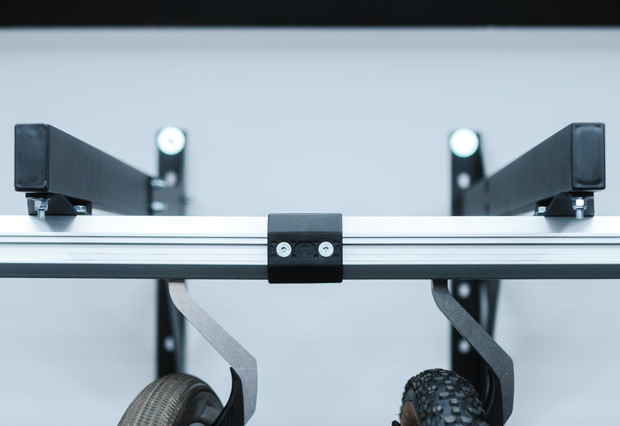 I binari standard sono lunghi 1100 mm/44 ”e sono progettati per conservare fino a quattro bici. Se tutte e quattro le bici sono grandi bici di enduro o downhill, potrebbe essere necessario una sezione aggiuntiva di binario per godere di prestazioni ottimali. Offriamo un servizio di taglio della ferrovia personalizzato gratuito se necessario.